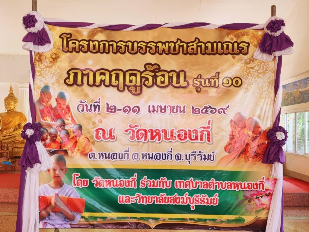 วัดหนองกี่ ต.หนองกี่ อ.หนองกี่ จ.บุรีรัมย์ ร่วมกับวิทยาลัยสงฆ์บุรีรัมย์ มหาวิทยาลัยมหาจุฬาลงกรณราชวิทยาลัย จัดโครงการบรรพชาสามเณรภาคฤดูร้อนเป็นประจำทุกปี สำหรับปี ๒๕๖๙ เป็นครั้งที่ ๑๐โดยกำหนดจัดขึ้นระหว่างวันที่ ๒-๑๑ เมษายน ๒๕๖๙